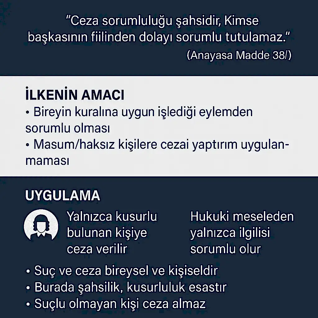 Cezaların şahsiliği ilkesi, ceza hukukunun temel taşlarından biridir. Bu ilkeye göre, suç işleyen kişi yalnızca kendi fiilinden sorumlu tutulur ve