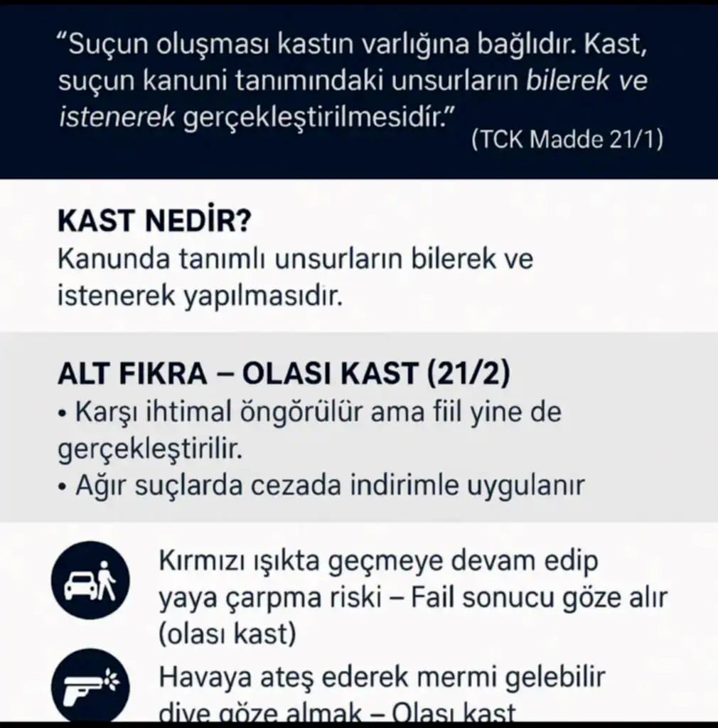 TCK 21/1, yani Türk Ceza Kanunu madde 21, birinci fıkra, ceza sorumluluğunun temel şartlarından biri olan kast ilkesini düzenler. Bu